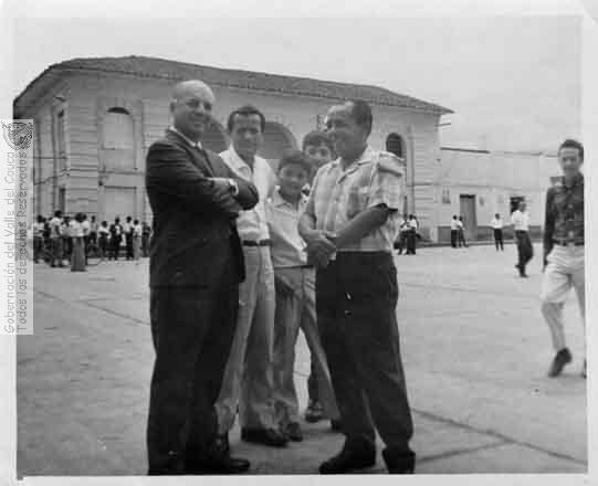 En primer plano el indutrial y dirigiente político Alvaro H. Caicedo, junto a él dirigente local Alfredo Londoño con sus hijos Mario, Alfredo y Fernando Londoño. Pradera. 1960.