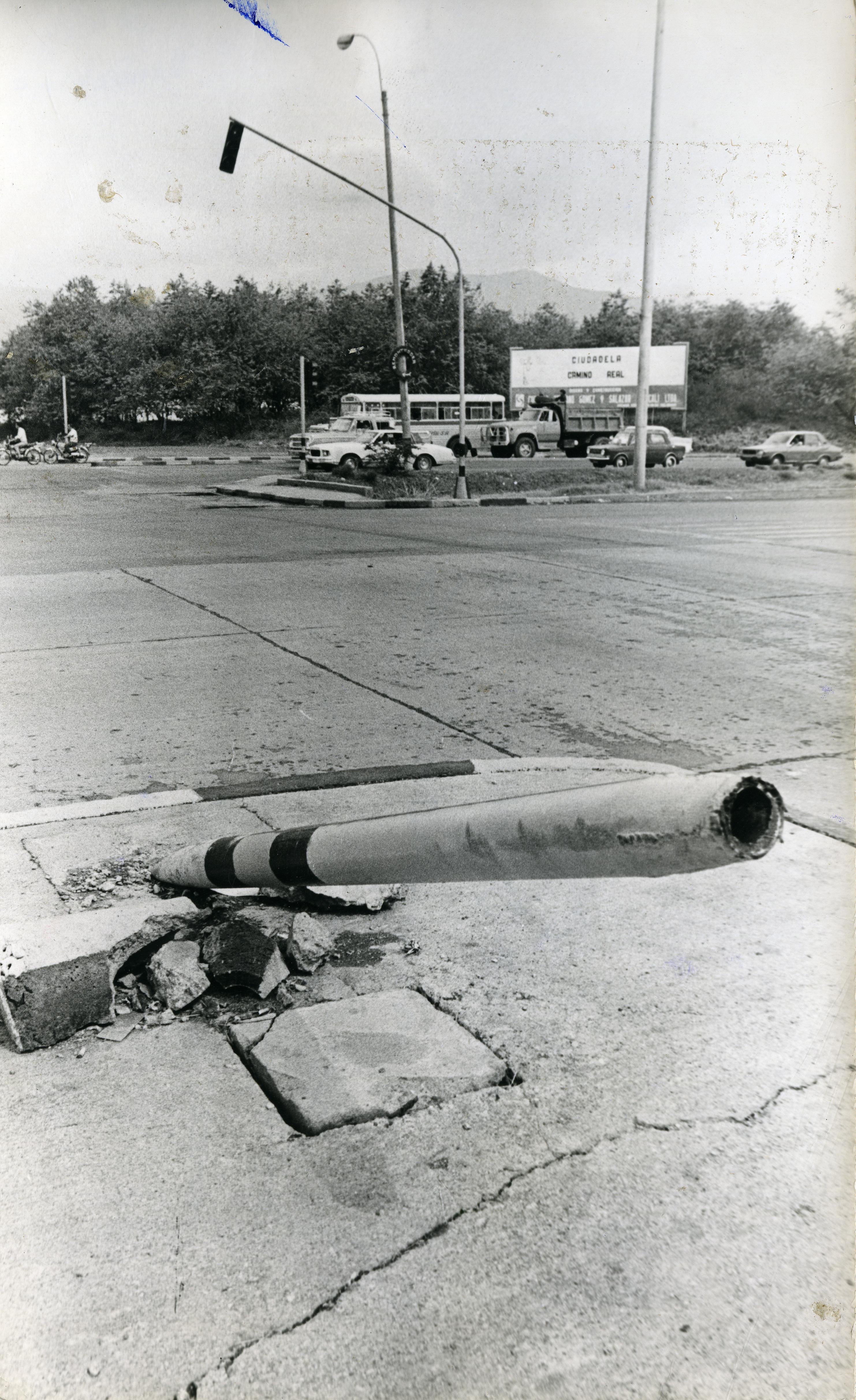 | dc.description.abstract | En la gráfica se observa el tubo de un semáforo caído y destrozado, se indica en la foto que esto es producto de vandalismo. Esta foto pertenece a la sección "Chiva Tita" del Diario Occidente. | spa |