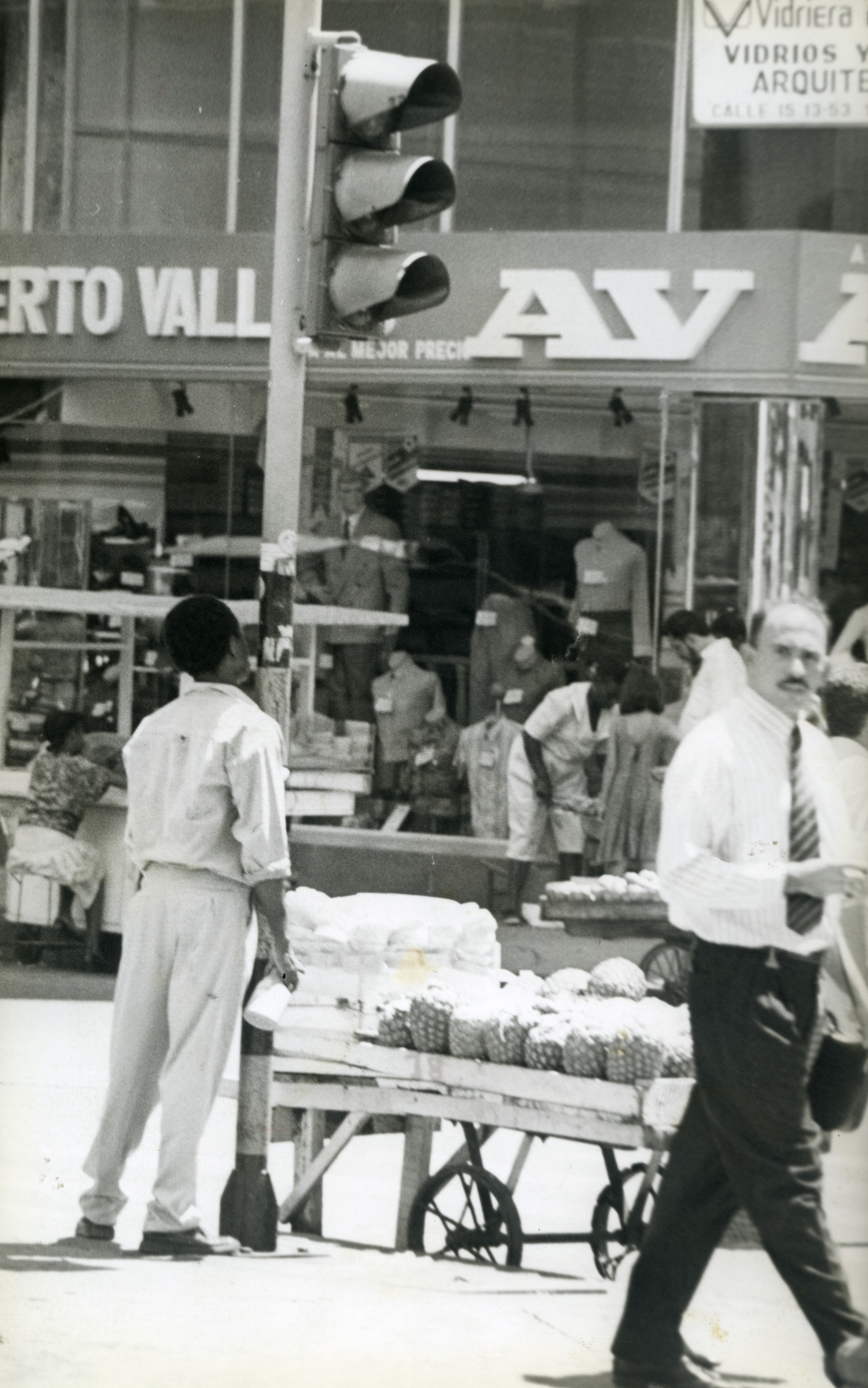 Al reverso de la fotografía anexa el recorte."Las frutas también se "tomaron" la plaza. Allí se venden piñas, mangos, uvas, naranjas, limones. Hasta cebolla cabezona y aguacates se ven todos los días en este parque".