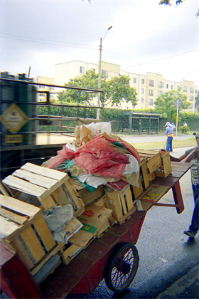 | dc.title | En primer plano carreta con la cual un hombre recicla desechos en la ciudad | spa |