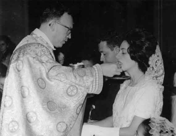 Presbítero José Alvarez Díaz, oficiando la ceremonia de matrimonio de Carlos Echeverry y Teresa Alvarez, Restrepo, C.1960
