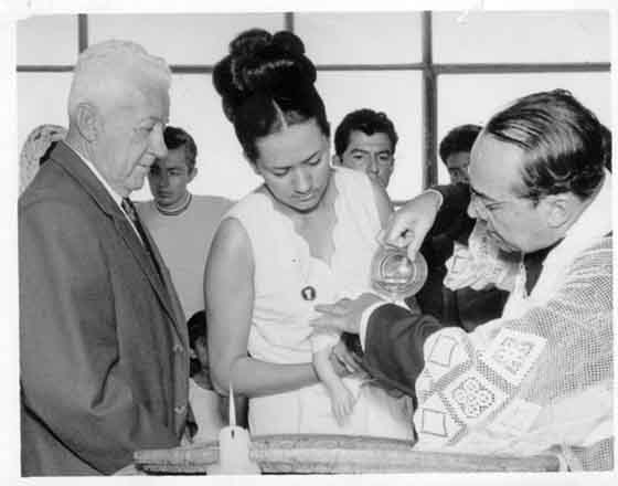 Ceremonia de bautizo en la Iglesia de San Fernando Rey -personas por identificar-. Santiago de Cali. 1970.