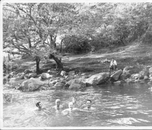 Bañistas en el llamado Charco del Burro, uno de los tantos sitios de recreación que tenían los caleños gracias a la frondosidad del río y la naturaleza del valle