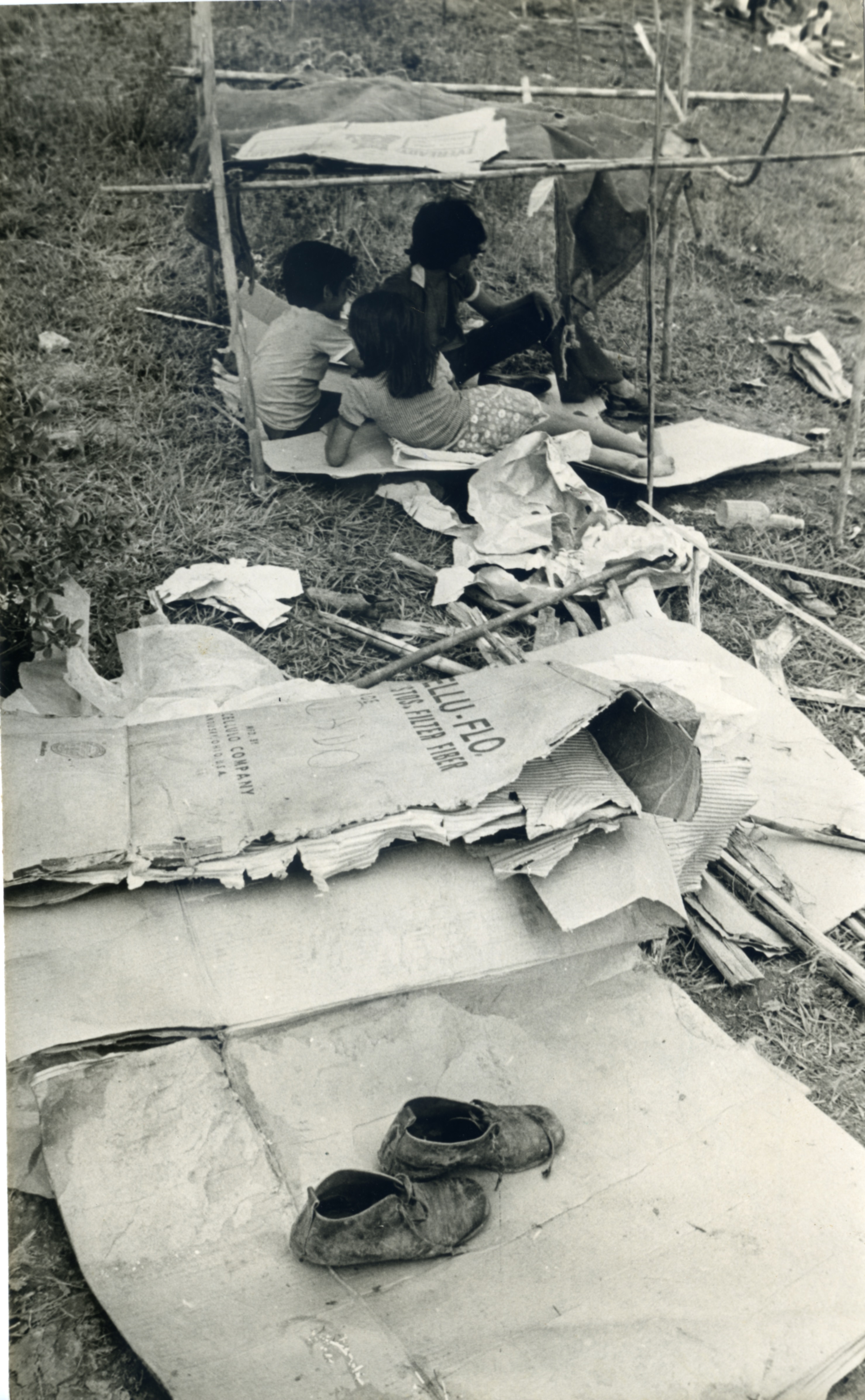 Se observan algunos niños reposando sobre cartones, en la invasión del barrio Terron Colorado.