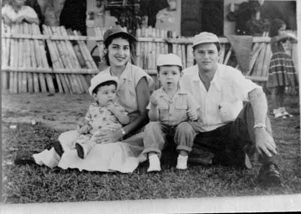Paseo campestre a Los Tanques: Lucia Delgado y Braulio Gardeazábal sus hijos, Jorge Alberto y Luis Carlos Gardeazábal Delgado. Tuluá, 1955.
