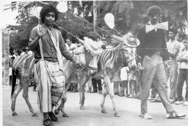 Comparsa en la celebración de las fiestas del retorno. El Cerrito, 1969.