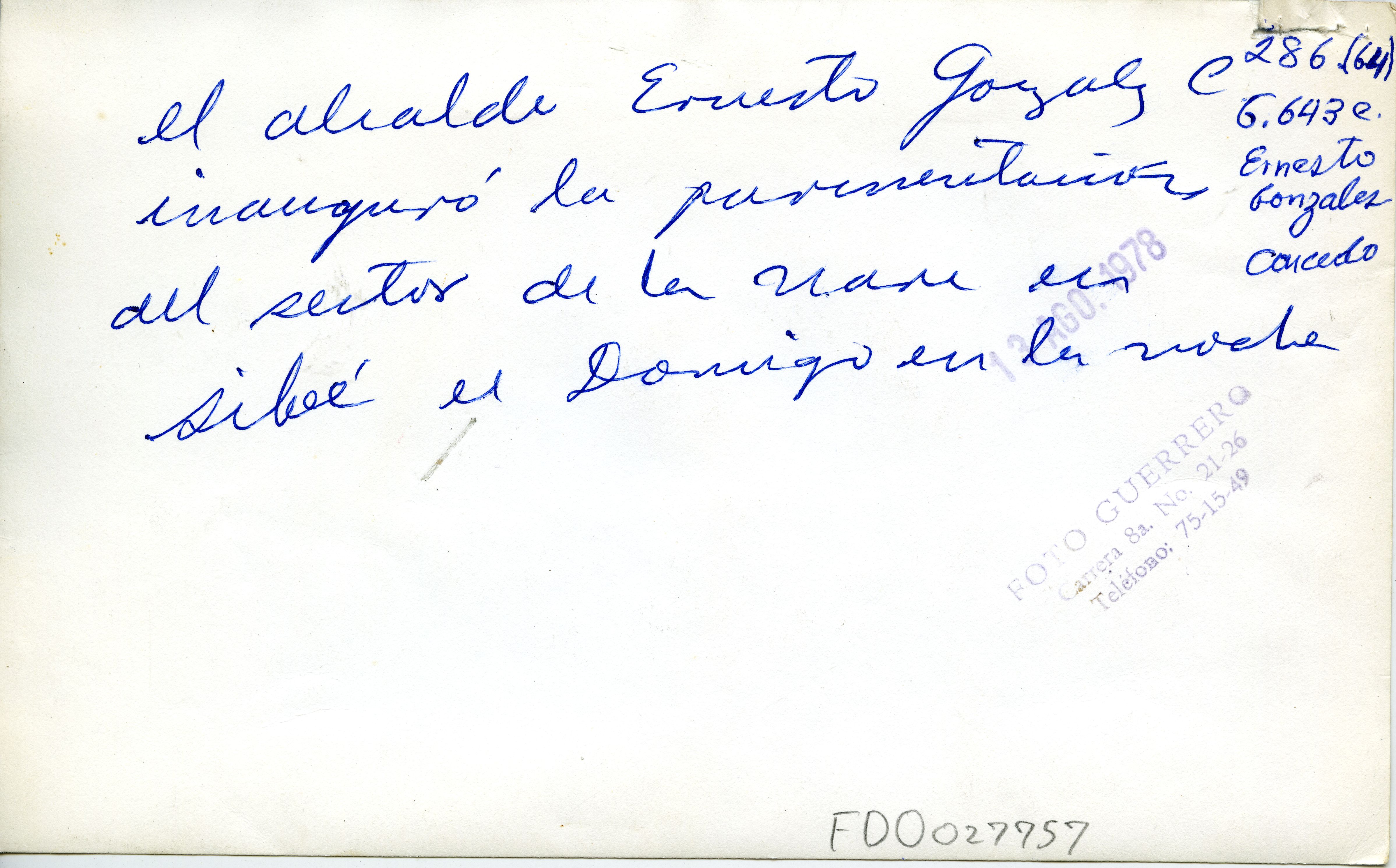 En la foto se aprecia el momento donde el entonces alcalde de Cali Ernesto González Caicedo hace entrega de la pavimentación del sector de la nave en Soloé ante la mirada atenta de la comunidad expectante, cabe resaltar la presencia de niños en la primera fila cercana a la tarima.