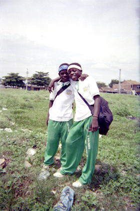 Vidal Buitrago, J. J. (2005). Dos niños con uniforme escolar deportivo posan a cámara en lote con maleza. Santiago de Cali: Biblioteca Departamental Jorge Garces Borrero.