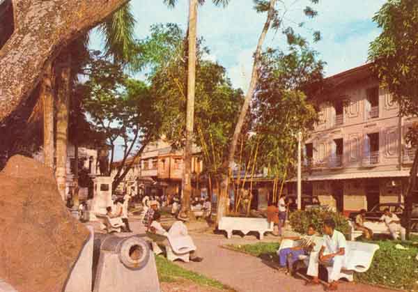 MOVIFOTO (1975). Señora Melba Ocoról, entre otras personas por identificar en el Parque Simón Bolivar, plaza principal del municipio; actualmente se encuentra remodelado & 604078. BUENAVENTURA: Biblioteca Departamental Jorge Garces Borrero.