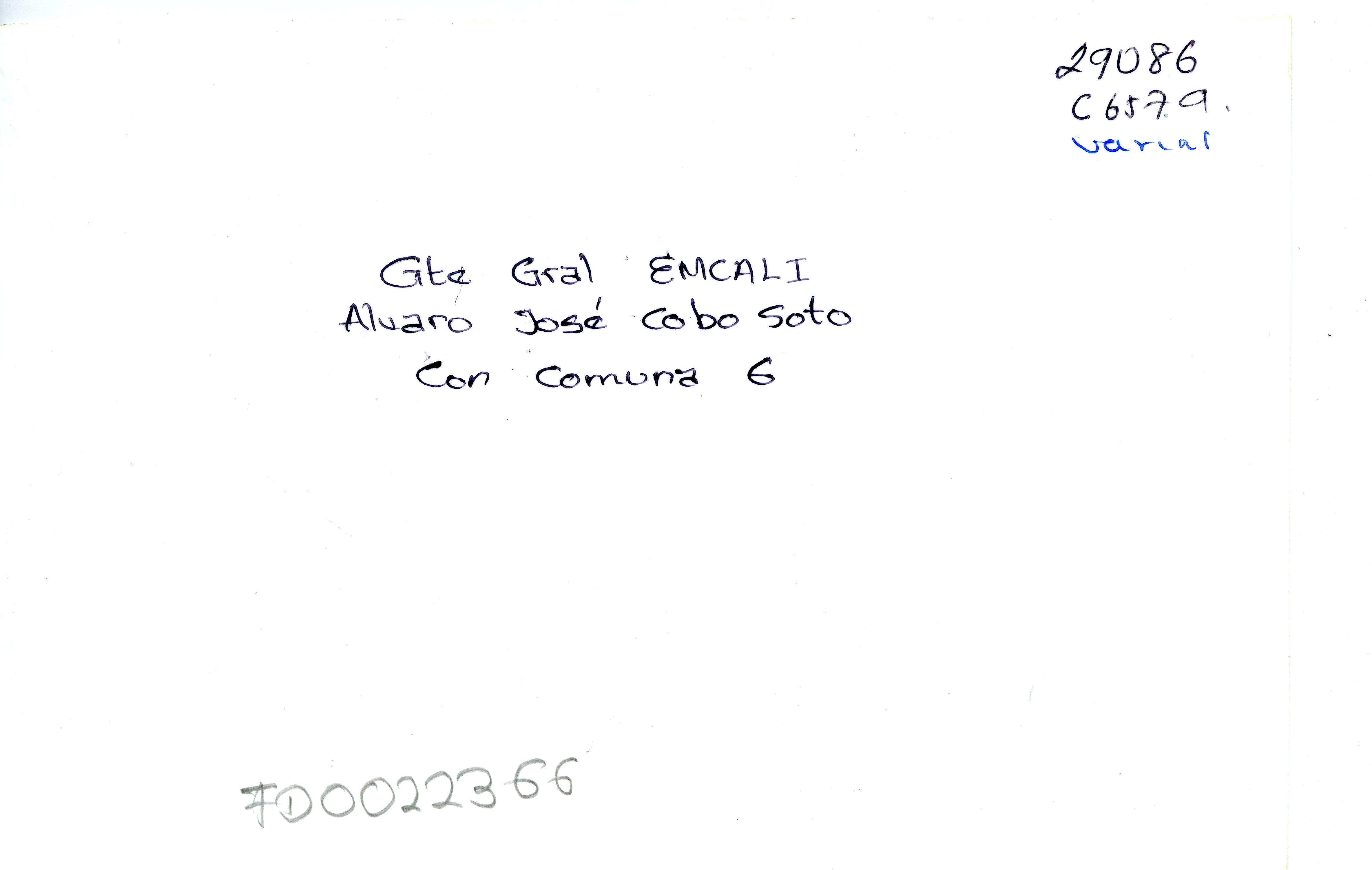 En la fotografía se observa de espaldas al gerente de Emcali Álvaro José Cobo reunido con varias personas de la Comuna 6 en Santiago de Cali. Se aprecia a varias personas reunidas dialogando con Cobo y en el fondo se aprecia un bus.