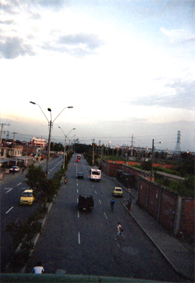 Plano general. Toma en picado. Avenida ciudad de Cali. Sobresale cielo despejado. Exterior noche.