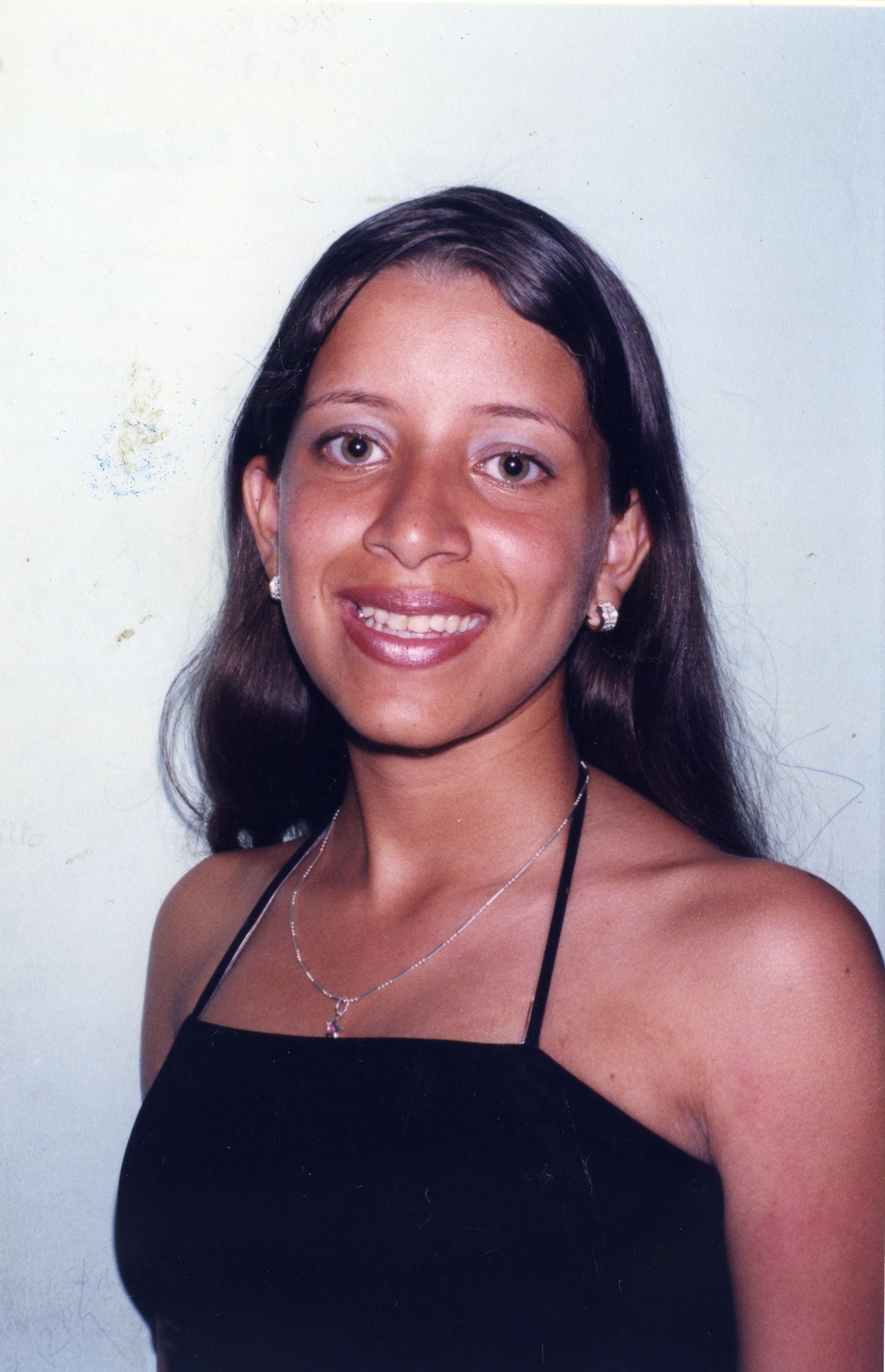 Perfil de participante al Reinado Nacional de la Agricultura, Verónica Andrea Cifuentes. Se aprecia de vestido negro, collar, aretes y cabello suelto. Palmira