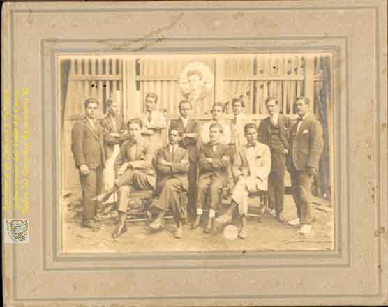 Julio Florez y otros artistas en una reunión cultural. Sevilla, 1925.
