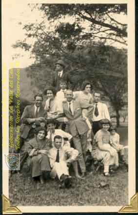 Los hermanos Pablo, Mario, Raúl y Oscar Scarpetta, junto a sus esposas, disfrutando de un día de campo en su finca en Candelaria. C. 1950.