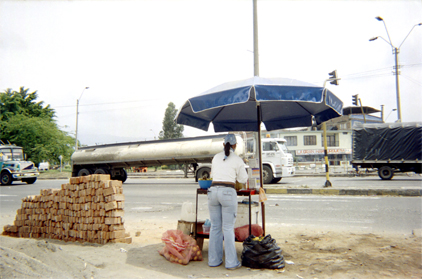 Jiménez Correa, S. (2005). Una mujer en contraplano en su puesto de venta de jugos de naranja. Santiago de Cali: Biblioteca Departamental Jorge Garces Borrero.