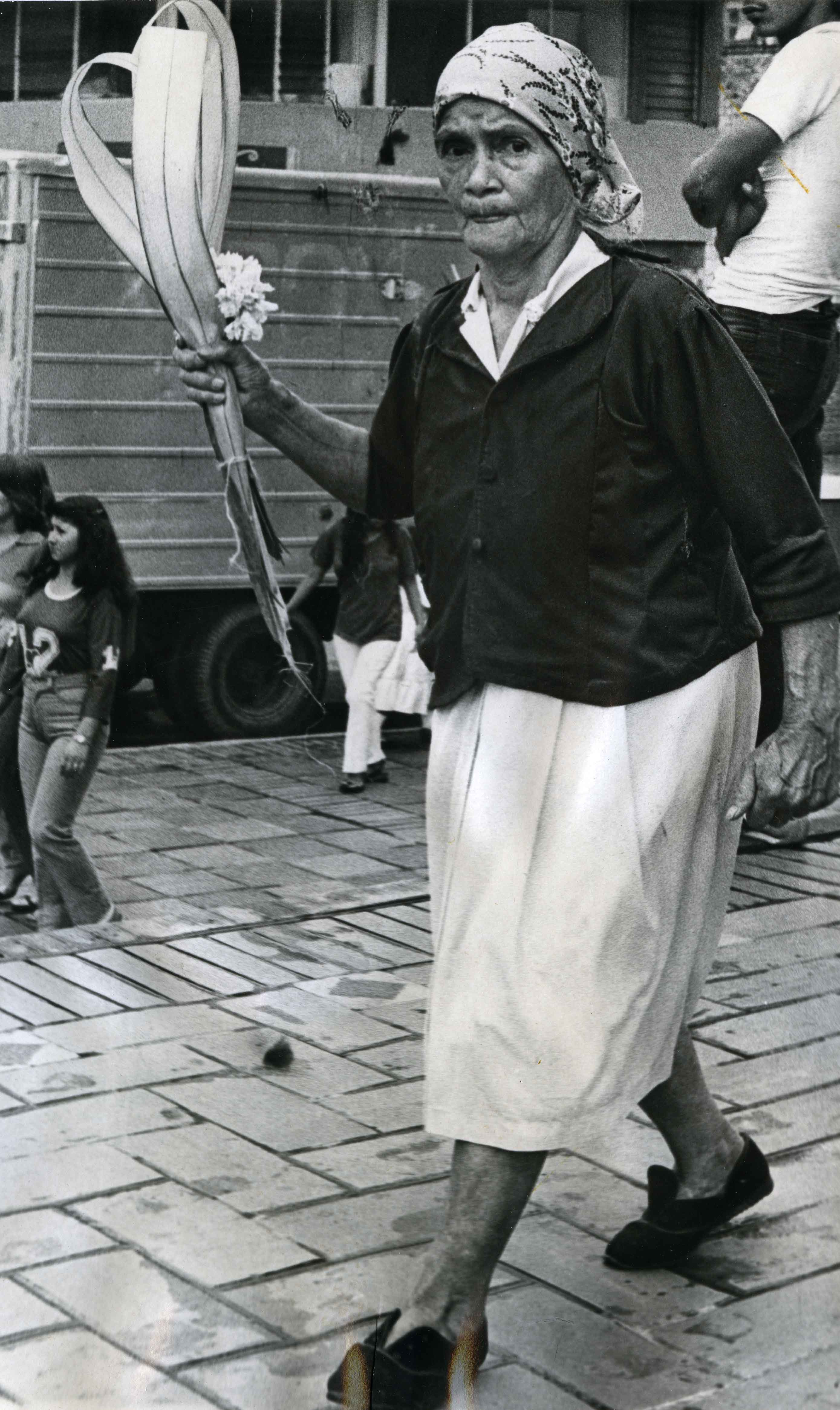 Señora celebrando el Domingo de Ramos en Santiago de Cali <El Archivo del Patrimonio Fotográfico y Fílmico del Valle del Cauca es responsabilidad de la Biblioteca Departamental del Valle Jorge Garcés Borrero, por convenio de cooperación suscrito con la Secretaria del Cultura Departamental, con el fin de aunar esfuerzos para su conservación, preservación y divulgación del Archivo entre la comunidad Vallecaucana, especialmente entre los estudiantes e investigadores que visitan la Biblioteca, propiciando el su uso y consulta permanente. La universidad Icesi es un colaborador en el proceso de difusión, facilitando la tecnología que permite la consulta de las imágenes.