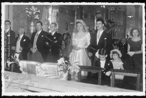 FOTO MULT (1948). Bernardo Azcárate Sinisterra el día de su boda con lMaría Nelly Cabal Plaza; los acompaña Fabio Cabal Plaza & 300277. BUGA: Biblioteca Departamental Jorge Garces Borrero.