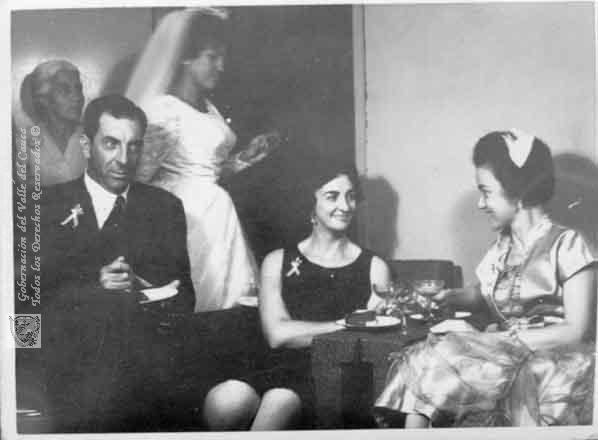 Sentados: Iván Cadavid, Mariela y Lida Sierra; de pies: Cili Shek y Bernardina. en fiesta de matrimonio.Zarzal, 1961.