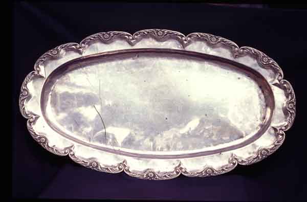 Bandeja en plata labrada. Convento San Joaquín y Museo Religioso. Cali, C. 1995