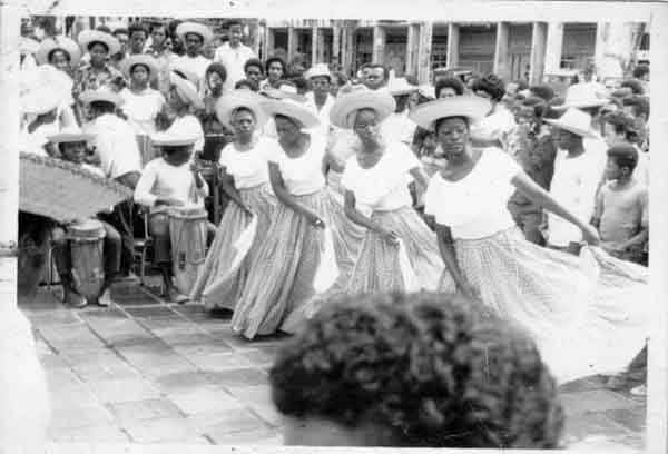 Presentación del folclor y ritmos del Pacífico a cargo del por el grupo Bahia De La Cruz en el parque Simón Bolivar del municipio de Buenaventura. 1970.