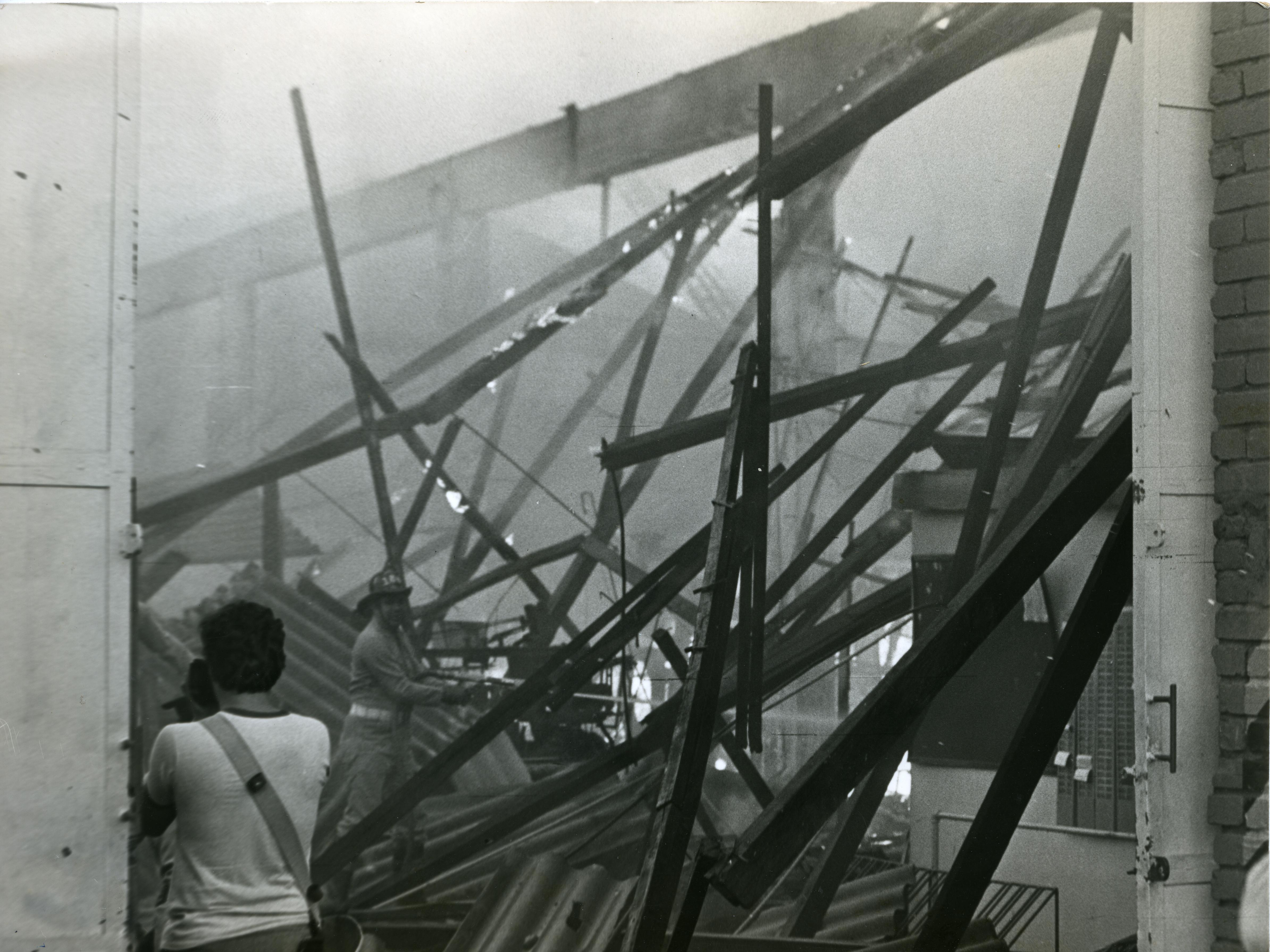 En la gráfica se aprecia incendio en la Carrera 4 con calle 28 en la ciudad de Cali. Observamos bombero apagando el fuego con agua y se aprecia un hombre de espalda