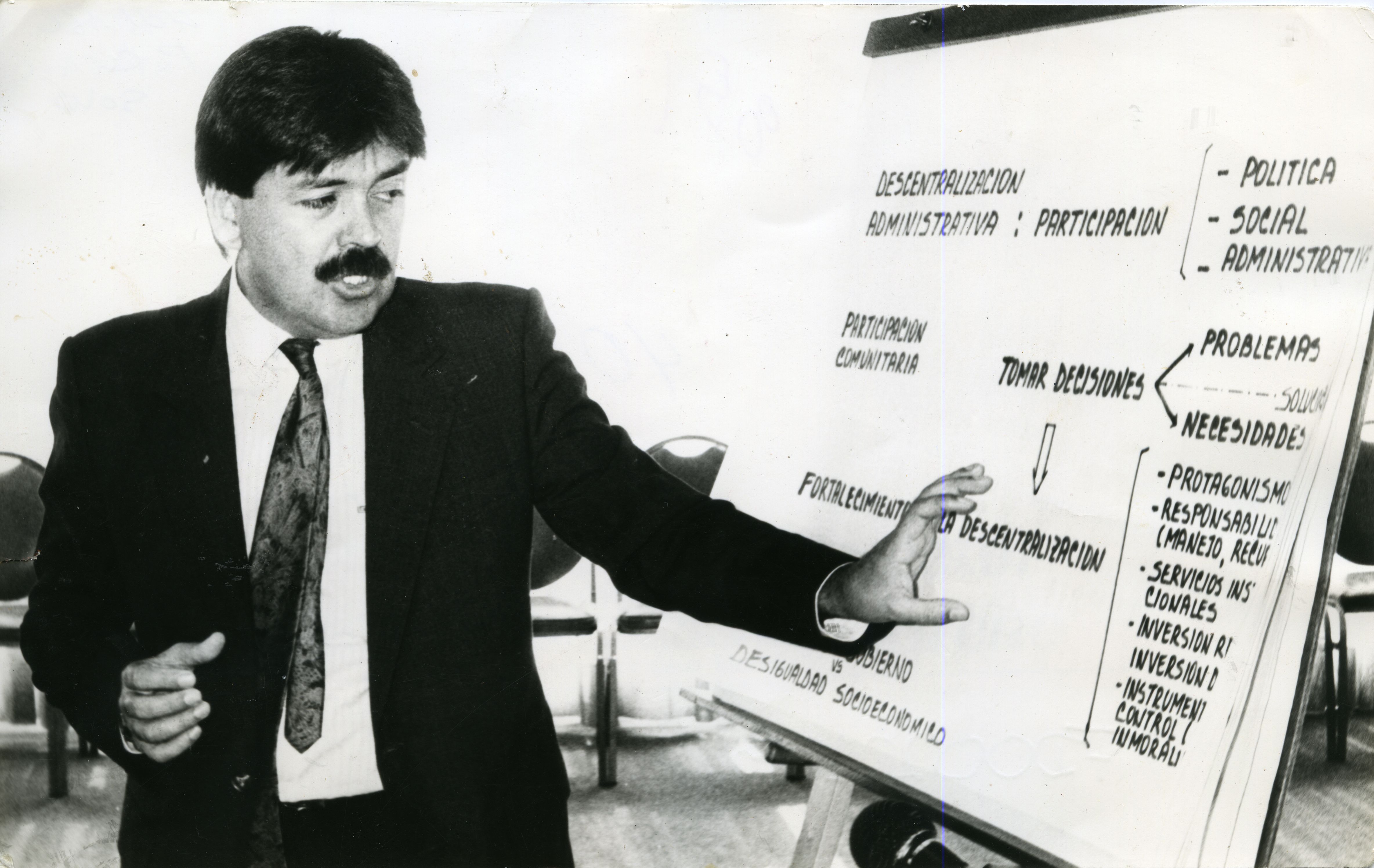 Al reverso de la fotografía se anexa recorte:" Aspira a contar con la… Se puso ayer en marcha. Coordinación y control del departamento. Carlos Pinilla Malo cuando explicaba los alcances del novedoso mecanismo comunitario