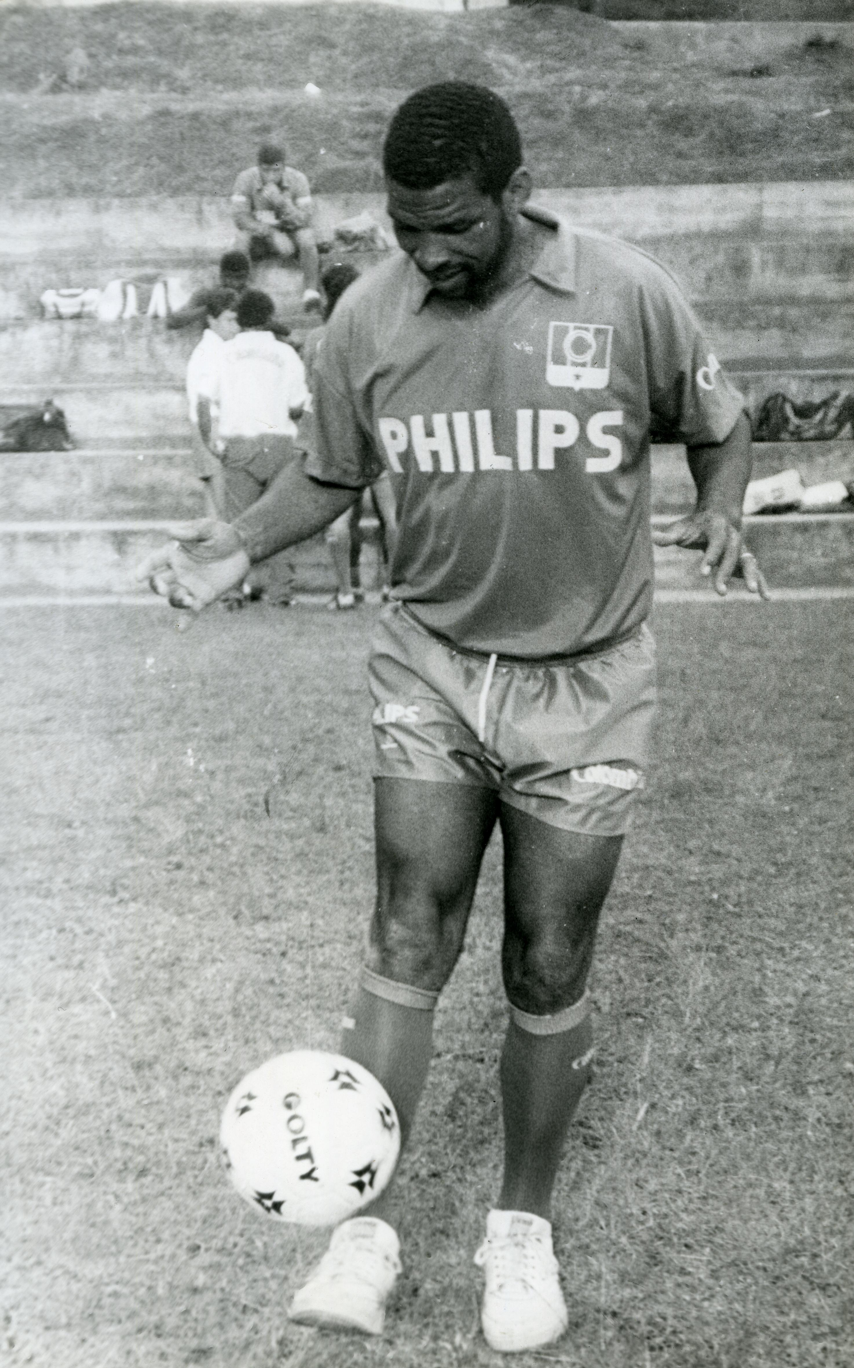 En la Foto Jairo "El Banano" Murillo, con la camiseta de entreno del Once Philips, como se llamaba el Caldas en la época en que fue patrocinado por la multinacional neerlandesa.