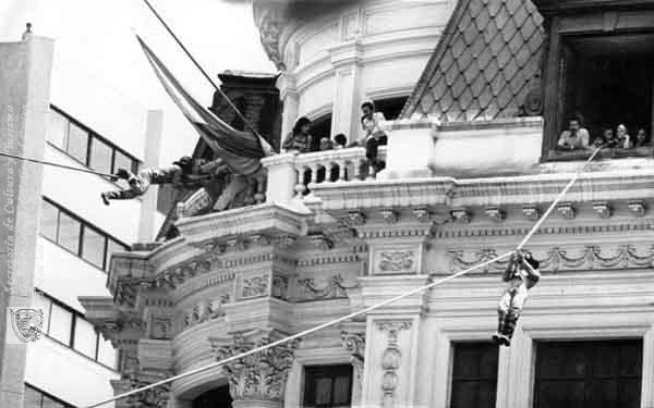 dc.description | Maniboras del Cuerpo de Bomberos, paso de lancero desde el Palacio Nacional. Cali. C. 1950. | spa |