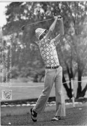 Benito Strelec Rabec, durante un juego de golf en el Club Shalom. Santiago de Cali, C. 1970