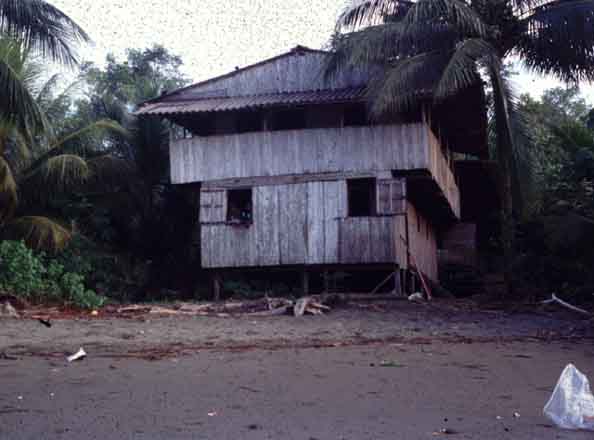 Vivienda típica de la Isla Ají; Costa Pacífica en Buenaventura. C. 1990.