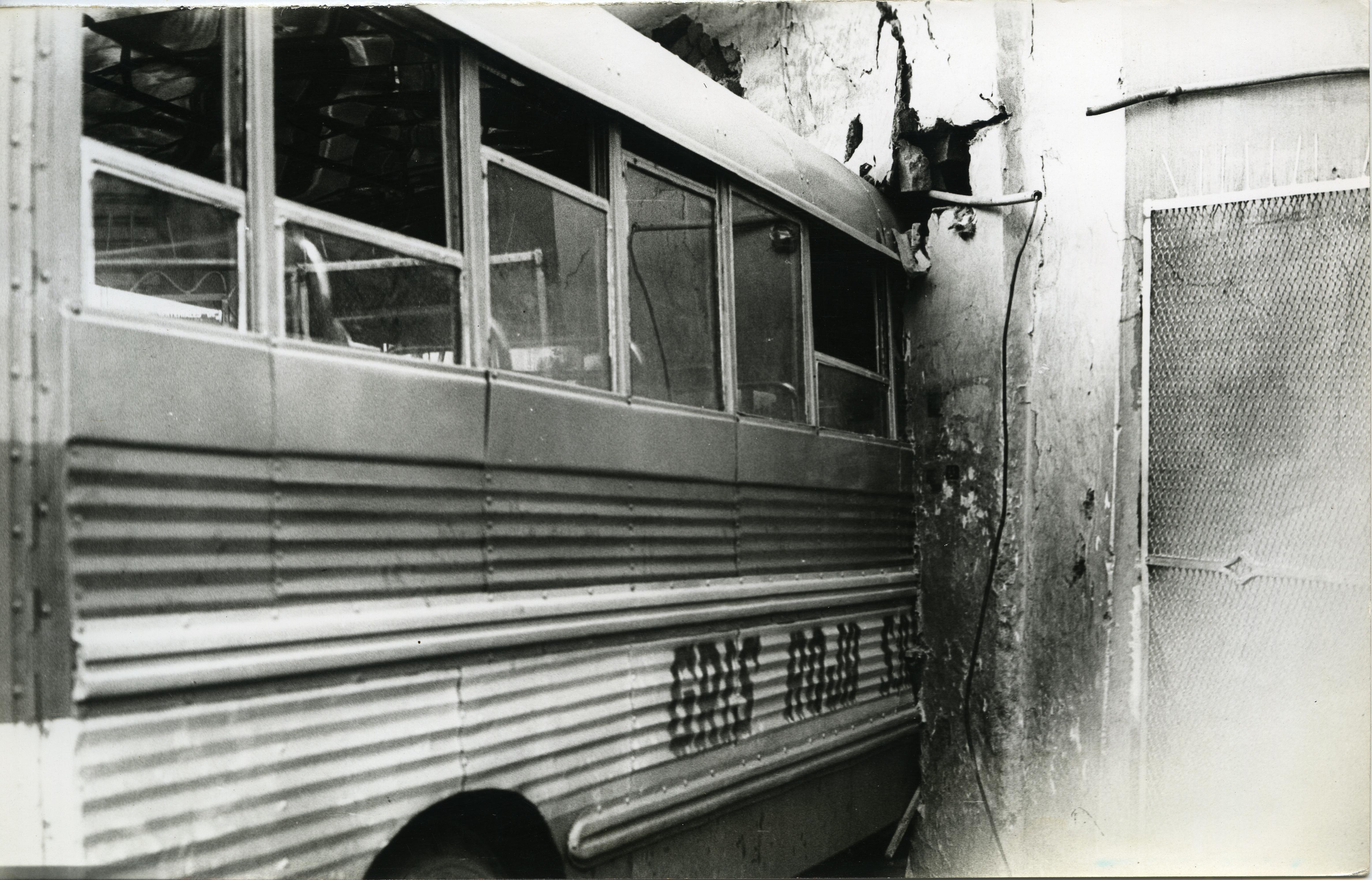 En la gráfica se observa el lateral de un bus que atravesó una pared al estrellarse con esta.