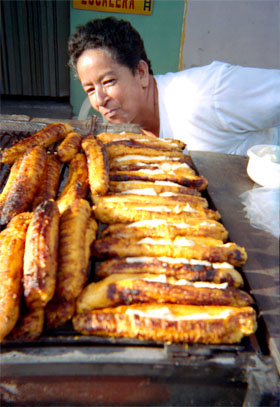 Primerísimo primer plano. Exterior día. Mujer inclinada sobre objeto. Toma levemente inclinada. Sobredimensión objetual por encuadre. Realce de texturas.