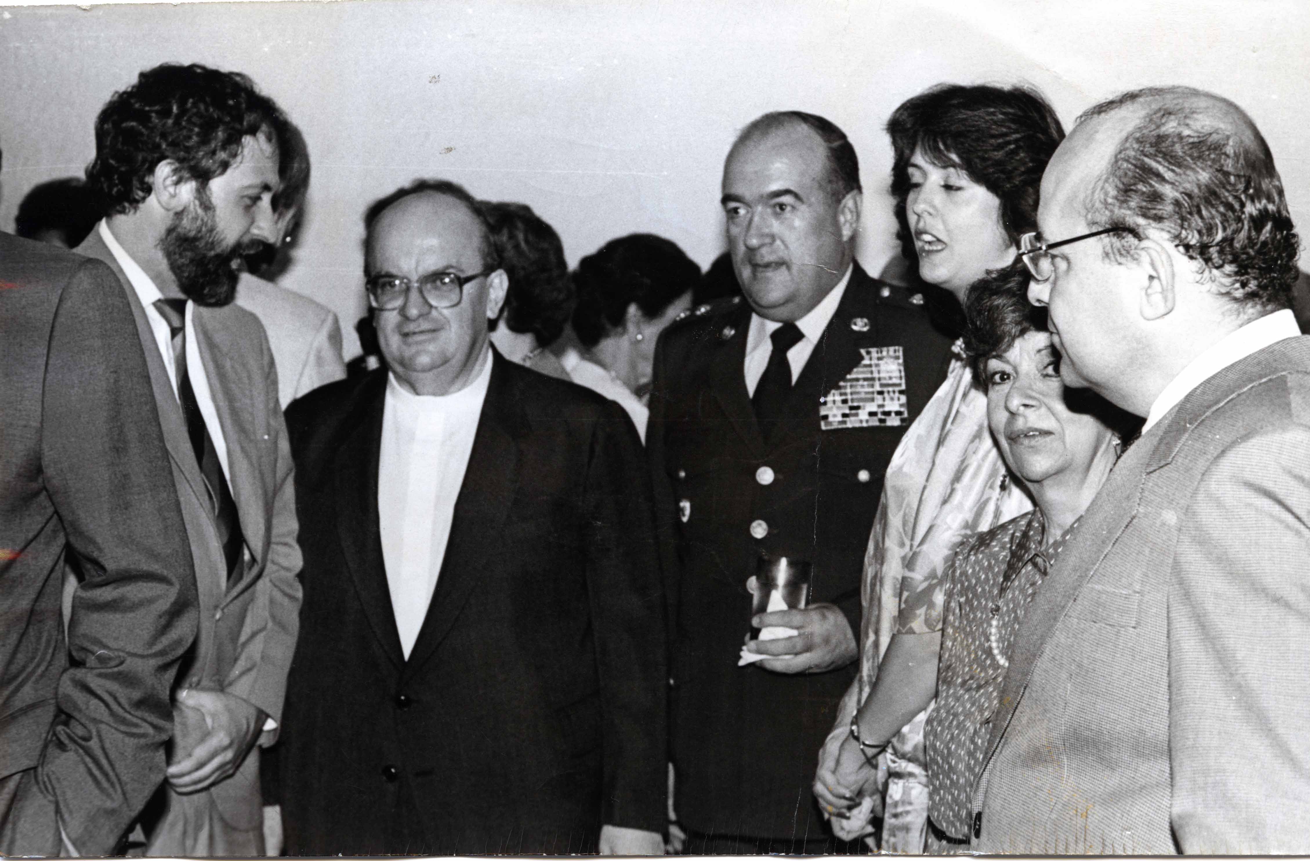 El Sacerdote Edgar Alzate, párroco del tempo de San Fernando Rey, ofreció un coctel para despedir al General Hernán José Guzmán Rodríguez, Comandante de la Tercera Brigada. En la fotografía se distingue al Sacerdote Edgar Alzate, el doctor Manuel Francisco Becerra, Gobernador del Departamento del Valle del Cauca; General Eduardo Roca, Jefe de la Tercera División; Señora Luz María de Becerra, Máría Alzate de Gómez y el Doctor Humberto Alzate > El Archivo del Patrimonio Fotográfico y Fílmico del Valle del Cauca es responsabilidad de la Biblioteca Departamental del Valle Jorge Garcés Borrero, por convenio de cooperación suscrito con la Secretaria del Cultura Departamental, con el fin de aunar esfuerzos para su conservación, preservación y divulgación del Archivo entre la comunidad Vallecaucana, especialmente entre los estudiantes e investigadores que visitan la Biblioteca, propiciando el su uso y consulta permanente. La universidad Icesi es un colaborador en el proceso de difusión, facilitando la tecnología que permite la consulta de las imágenes.