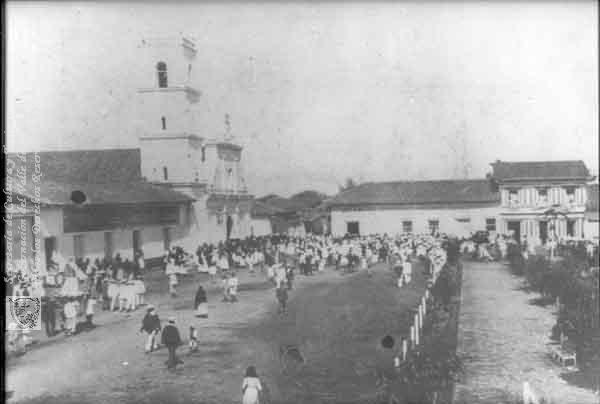 La Plaza Caycedo, nació con la fundación de la ciudad y fue llamada la plaza de la constitución hasta 1813 cuando cambio su nombre al actual, para honrar al prócer caleño Joaquin Caycedo y Cuero. Cali. C. 1920.