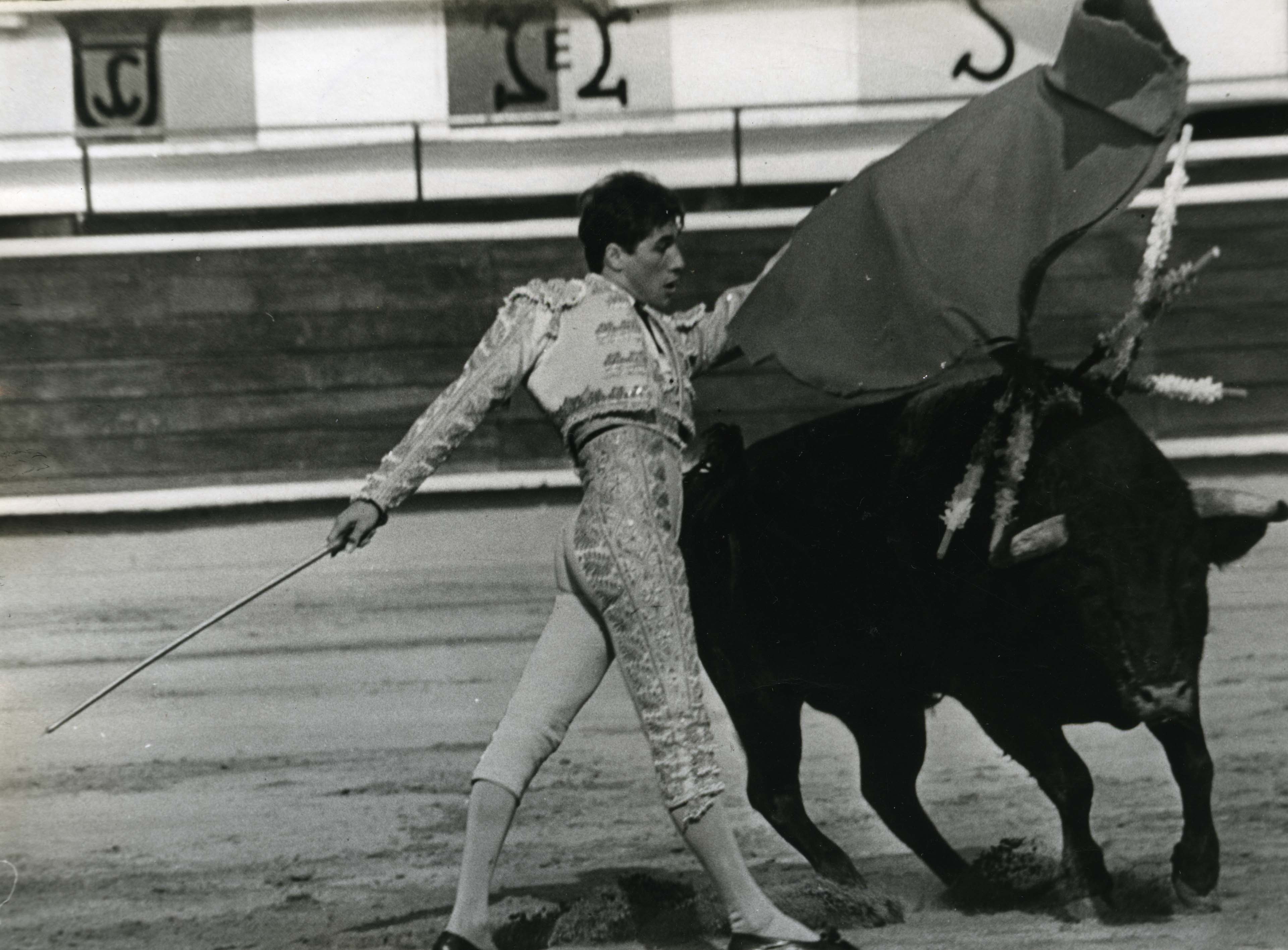 Emilio Oliva en la Plaza de Toros de Cañaveralejo. Emilio Oliva se luce en este forzado de pecho con el que remató una tanda de naturales al ejemplar Perdido, de Clara Sierra. La figura compuesta, la espada de ayuda en su mano derecha y el toro que pasa dificultosamente bajo la pañosa >El Archivo del Patrimonio Fotográfico y Fílmico del Valle del Cauca es responsabilidad de la Biblioteca Departamental del Valle Jorge Garcés Borrero, por convenio de cooperación suscrito con la Secretaria del Cultura Departamental, con el fin de aunar esfuerzos para su conservación, preservación y divulgación del Archivo entre la comunidad Vallecaucana, especialmente entre los estudiantes e investigadores que visitan la Biblioteca, propiciando el su uso y consulta permanente. La universidad Icesi es un colaborador en el proceso de difusión, facilitando la tecnología que permite la consulta de las imágenes.