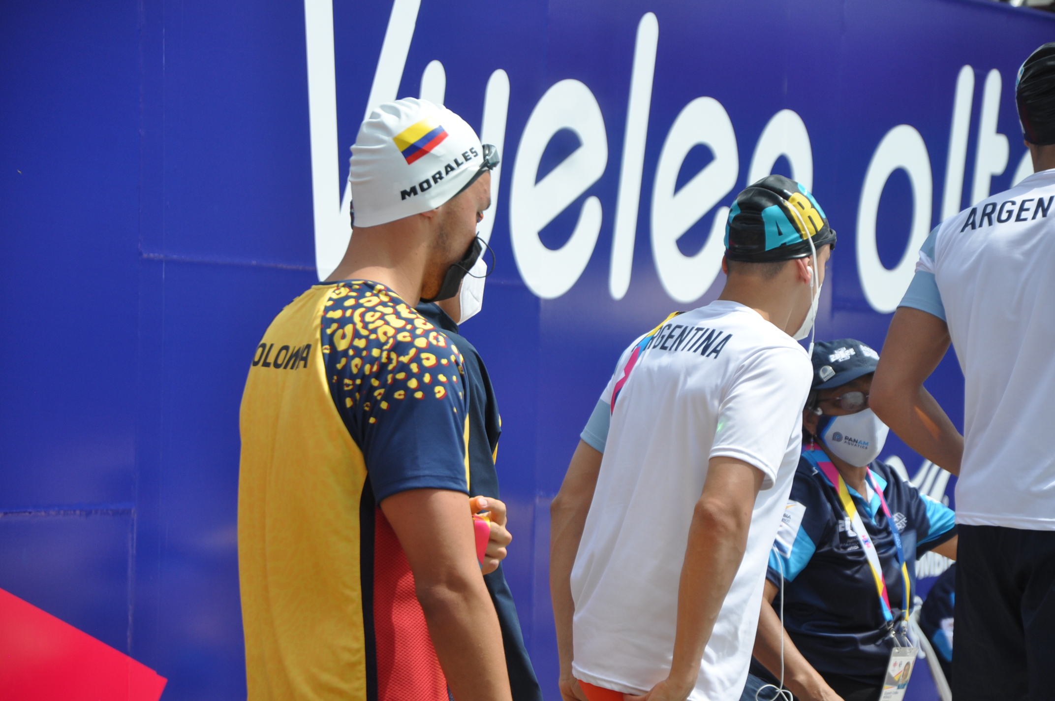 En la fotografía podemos apreciar a algunos de los participantes de la competencia de natación, entre ellos se encuentra el colombiano Juan Manuel Morales Restrepo. Todos ellos de encuentran en los "I Juegos Panamericanos Junior" llevados a cabo en la ciudad de Cali.