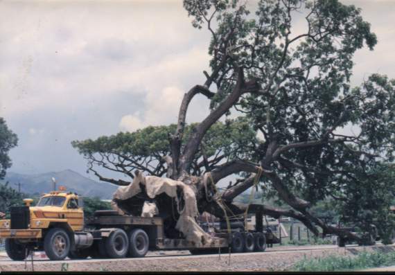 San Pedro, Valle del Cauca. Fundado en 1561, por Juan de Herrera Gaitán. Municipio desde 1888. Economía importante en agricultura, Ganadería, Minería, entre otros. Atractivo turístico: Concurso Nacional de Bandas Municipales, Monumento a la Música, Senderos Ecológicos, Corregimiento los Chancos. Observamos en la imagen, entrada principal de San Pedro y se aprecia el transporte de un samán el cual finalmente murió