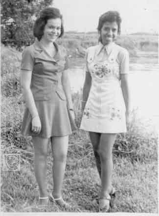 Yolanda Pinzón y Adiela Gutiérrez, de paseo al río La Vieja. Cartago, fecha aproximada, 1960.