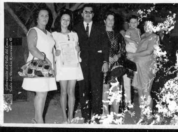 Nohelba, Alfredo y Ulises. Celebrando el grado de bachiller. Santiago de Cali, C. 1970.