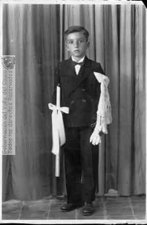 Celebración de primera comunión del niño Jairo Vallejo Sarria. Pradera, 1952.