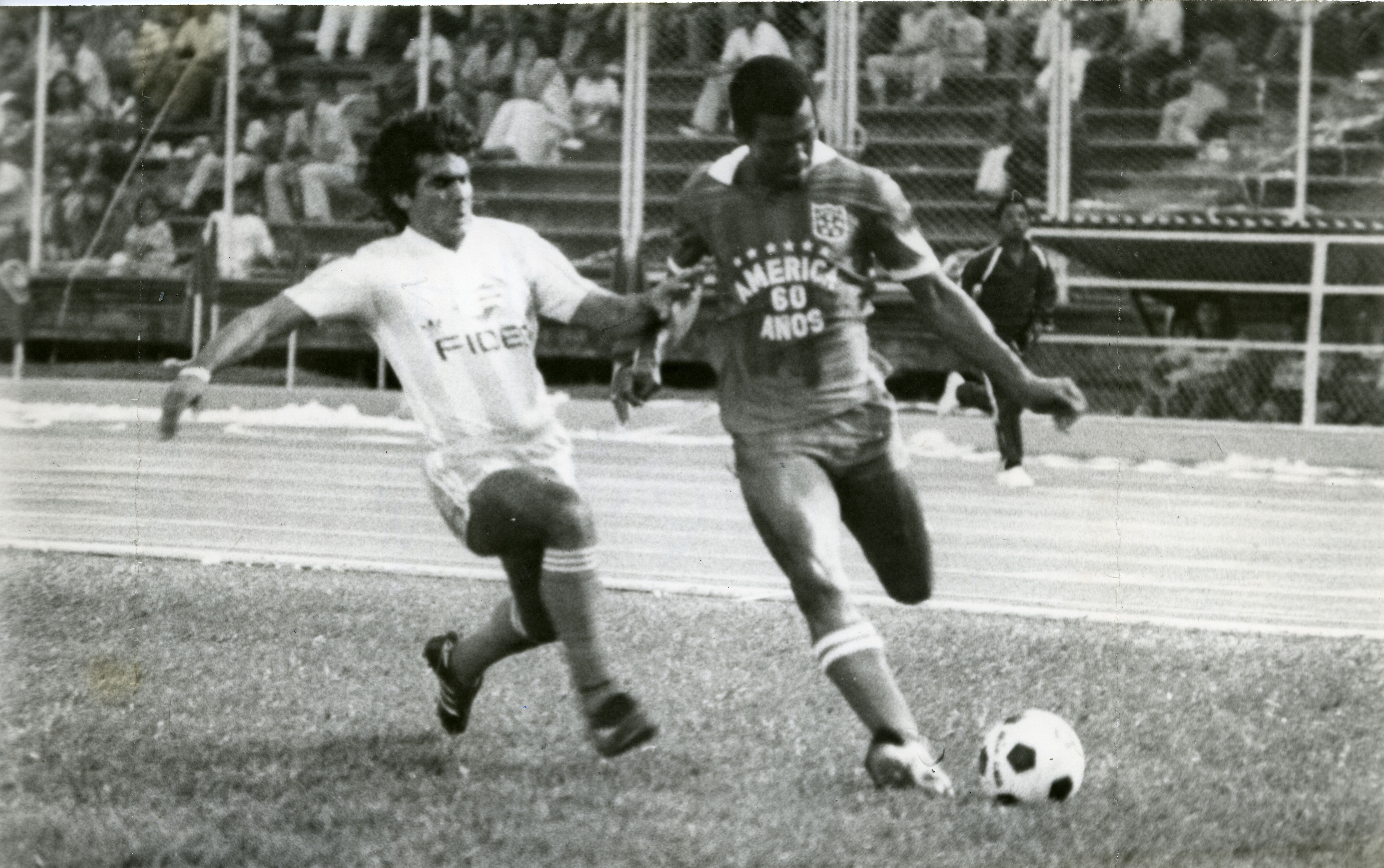 Partido entre los equipos América de Cali vs Racing de Avellaneda, Argentina, realizado en el estadio Olímpico Pascual Guerrero, Cali, Valle del Cauca. Se aprecia jugadores en escena