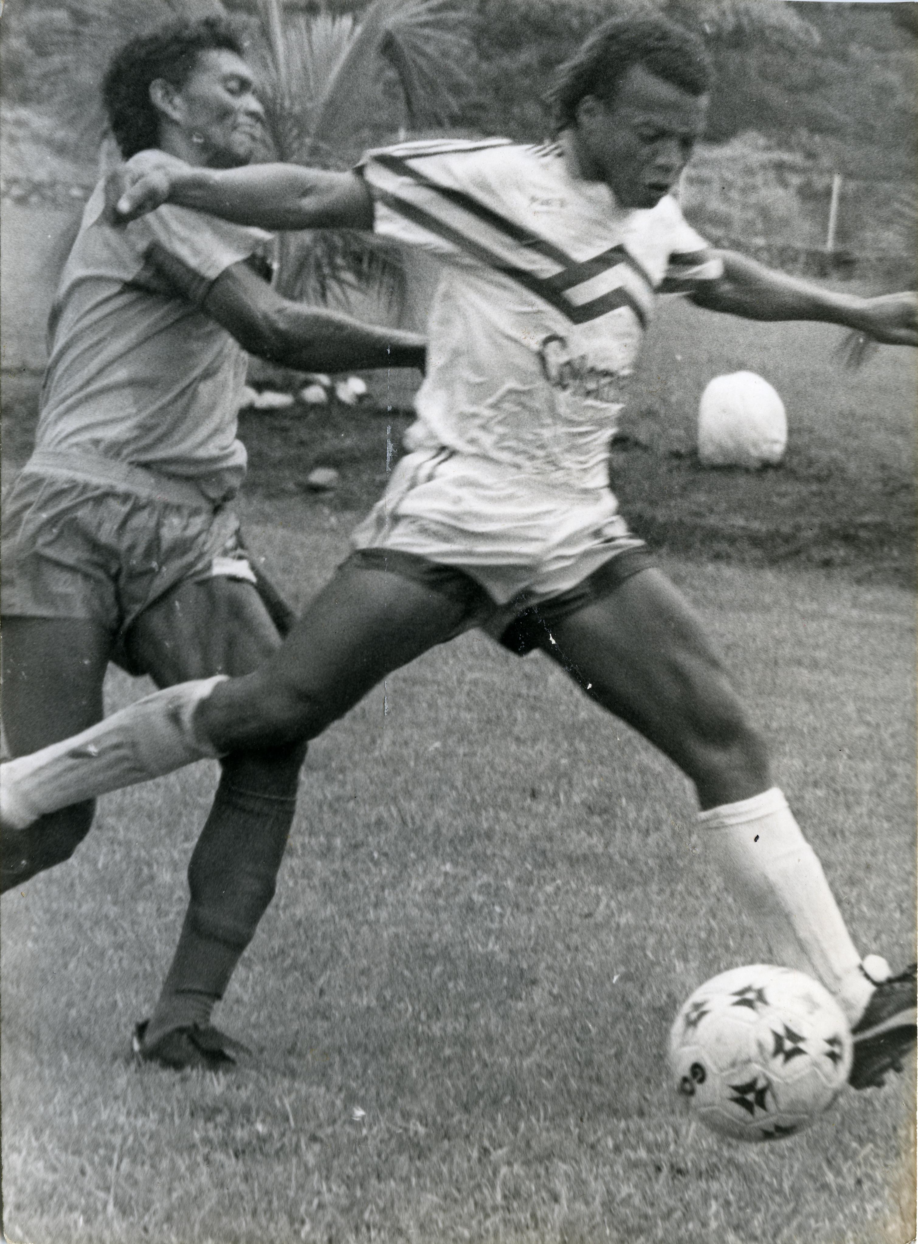 En la gráfica partido de fútbol equipos torneo de la categoría primera C. Observamos escena del partido y se aprecia jugadores luchan por el balón en el campo de juego