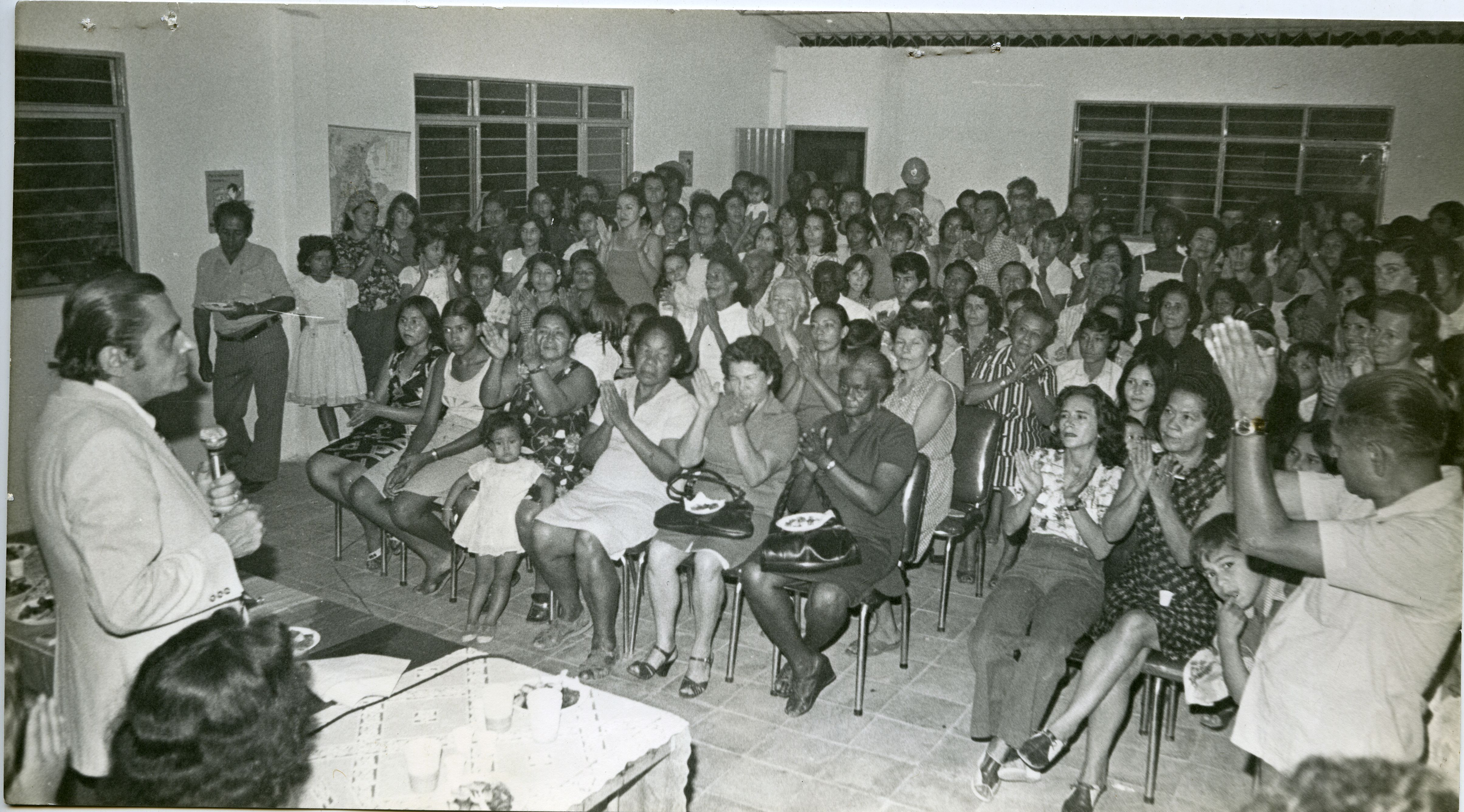 "Reverso: El alcalde de Cali en compañía de la secretaría de educación municipal, doctora Piedad Varela de Tascón hizo entrega de una moderna biblioteca en el barrio San Judas de esta ciudad. La gráfica capta un aspecto de la reunión. (Foto Guerrero para occidente)"