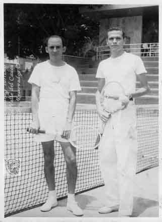 El señor Eduardo Moreno M. y Gustavo Herrera Chacón en el club de tenis. Cali. 1950.
