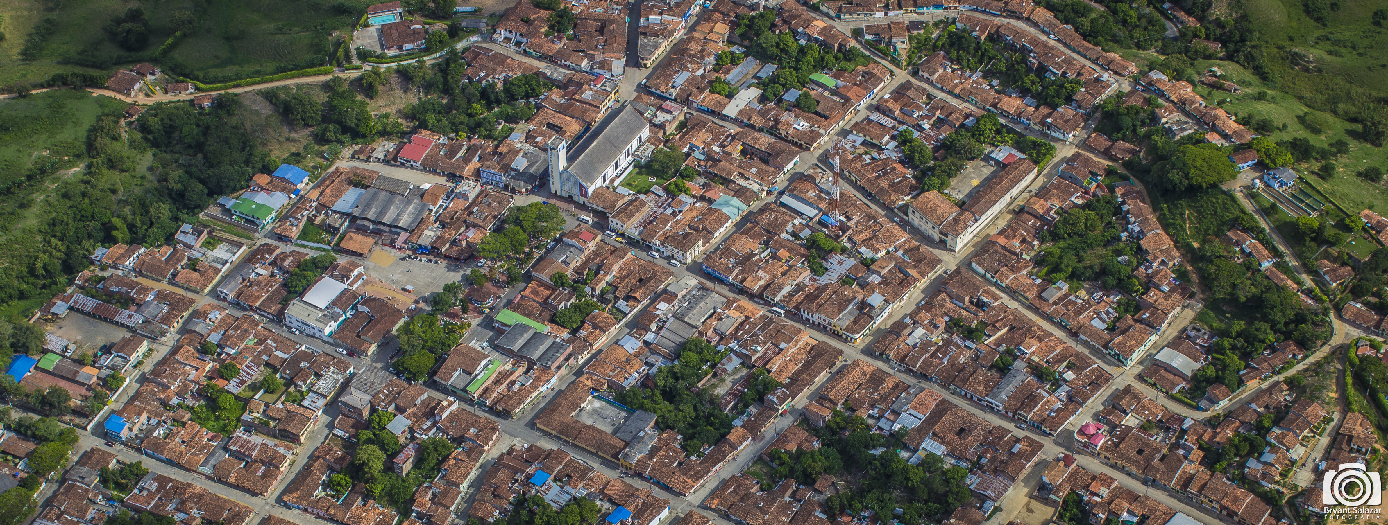 Ansermanuevo, Valle del Cauca. Fundado 15 agosto de 1539, por el Mariscal Jorge Robledo, Se convirtió en municipio por ordenanza 29 de abril de 1925. Observamos vista aérea del municipio