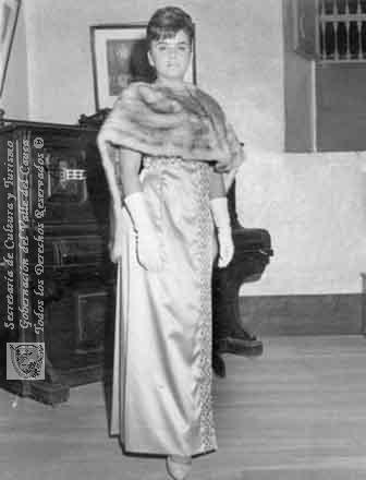 Mirian Serrano Durán vestida de gala. Cartago. 1964.