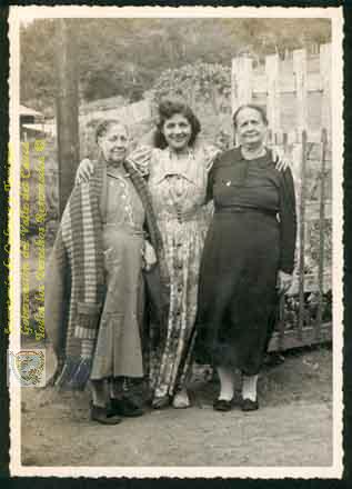 En las afueras de su residencia campestre en San Antonio, la señora Soledad Otero de Scarpetta, junto a su suegra Barbara de Scarpetta y su cuñada Debora Scarpetta