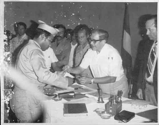 Ceremonia de Promoción de aspirantes a bomberos, Estación Central del Cuerpo de Bomberos Voluntarios. Santiago de Cali, C. 1.977