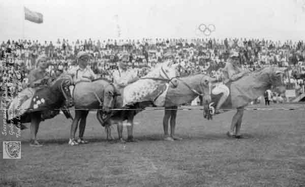Celebración de la Semana del bombero. Carrera de caballos en el antiguo hipódromo de Versalles, donde hoy se encuentra el centro comercial Pasarela. Fiesta organizada para recoger fondos para la institución. Cali. C. 1942.