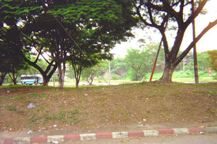 Plano Medio. En la imagen se destaca un separador vial con algunos árboles sembrados en él. Al fondo se alcanza a observar una vía por la que transita un bus de color azul.